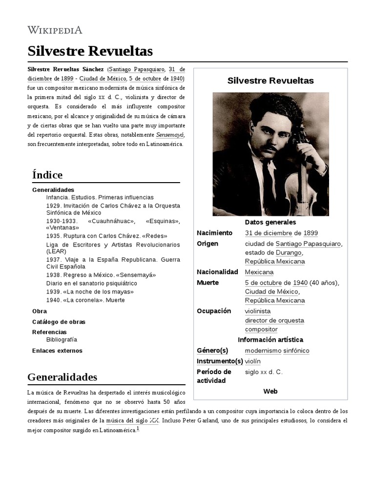 .On 31 december 1899, silvestre revueltas sanchez was born in a small town named santiago papasquiaro, durango in mexico. Silvestre revueltas, mexican composer, teacher, and violinist, best known for his colourfully orchestrated music of distinctive rhythmic vitality.