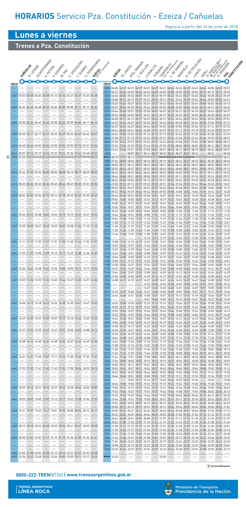 Recorda que debido al covid, debes reservar turno para viajar en tren. Consulta los horarios de la linea roca. La línea roca de tren (dirección: Bienvenidos a nstra.pagina aca dispones de toda la info con todos los horarios de los trenes de la linea gral. El cronograma 2020 de horarios incluye más trenes nocturnos. El ministerio de transporte de la nación anunció este viernes que desde el 2 de marzo la línea de trenes roca incorporó de lunes a viernes nuevos servicios nocturnos para brindar a los pasajeros una mejor oferta de viaje. 0%0% found this document useful, mark this document as useful. Los pasajeros del tren roca, que cumplen tareas esenciales deberán reservar su asiento para viajar en los servicios de horas picos de. Los servicios del tren roca funcionarán el jueves 1/4 según cronograma de sábados y el viernes 2/4 de aviso importante: Desde las 12:49 y hasta las 04:47. Todo lo que tenes que saber acá. Emd gt22 a911 llegando a ezeiza. Para consultar horarios de tren en tiempo real, y comprobar si tu tren llegará puntual o viene con retraso, introduce la estación o el renfe ave horarios. No, no hay tren directo desde la plata a josé maría ezeiza. Use el mapa para buscar recorridos. Horarios de trenes de buenos aires y de la república argentina: Información y anécdotas que los usuarios del #trenroca. La línea roca de tren tiene 15 paradas. Encuentra los horarios y los precios de todas las rutas en españa y reserva el mejor tren para tu viaje. Cnoticias no se hace responsable del horario de ferrocarril roca. Una protesta de extrabajadores ferroviarios que aseguran haber sido despedidos impide la circulación de las formaciones. Se trata de la incorporación de un sistema de frenado automático, independiente del accionar humano, conocido como ats (automatic train stop. Frecuencias de ida vuelta por ramal, días lunes a viernes; Horarios de tren roca 2019. ☎️ call center 0800 222 8736. ☎️ call center 0800 222 8736. Ferrocarril línea general roca, línea mitre, línea urquiza, línea belgrano sur, línea belgrano norte, línea san martin, línea tren. Ahora, los últimos trenes saldrán de constitución pasadas las 21: Este servicio pertenece a la línea roca uno de los ramales es cañuelas a constitución. Cañuelas → ezeiza) tiene 10 paradas desde canuelas hasta ezeiza. Los siguientes horarios son los prestados por el tren roca, que sale desde la estación de trenes.